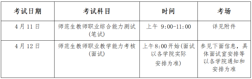 根据学校《关于做好2026年师范生教育教学能力考核工作的通知》要求,以下是关于师范生教育教学能力考核的考试相关信息: