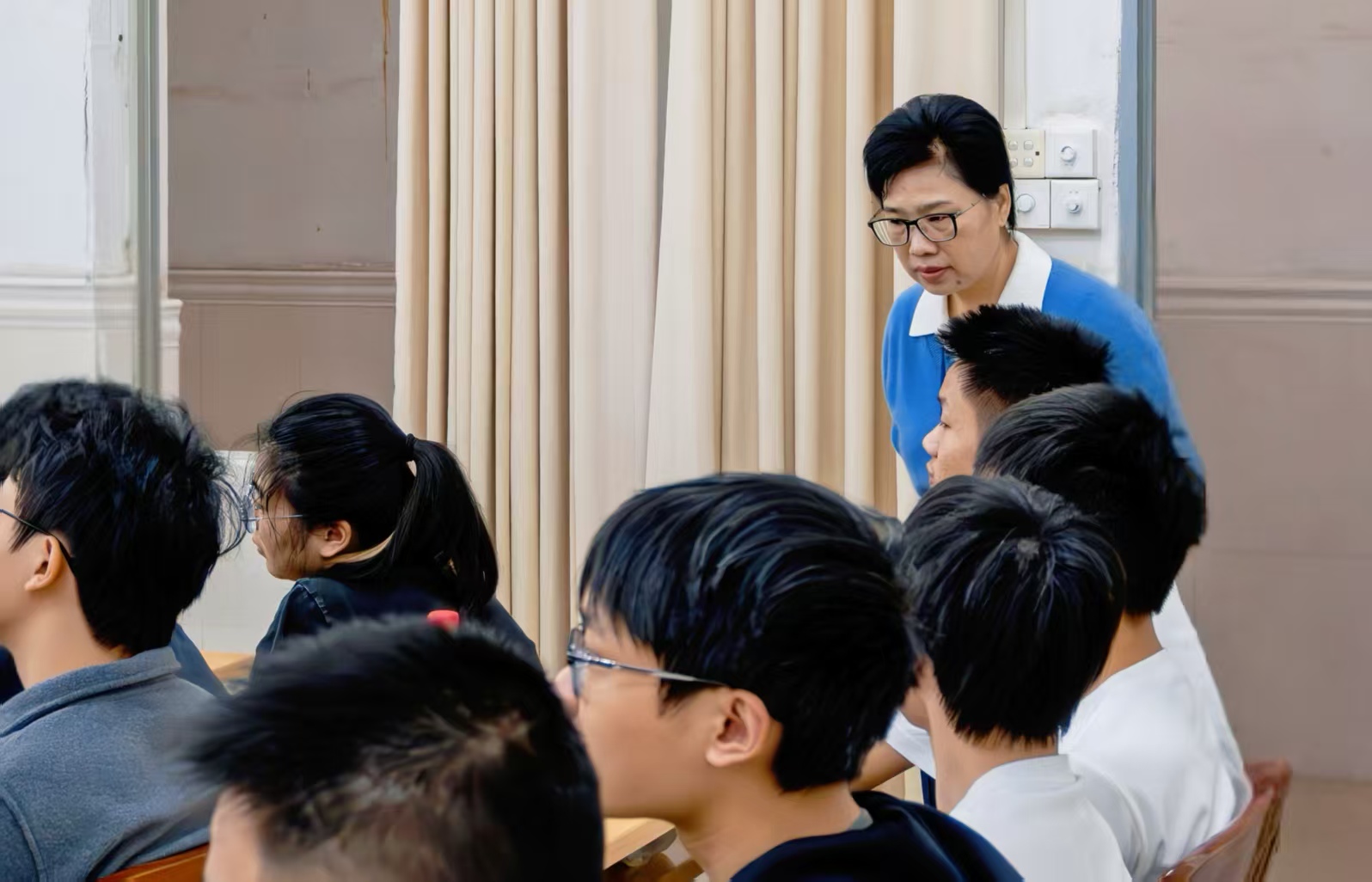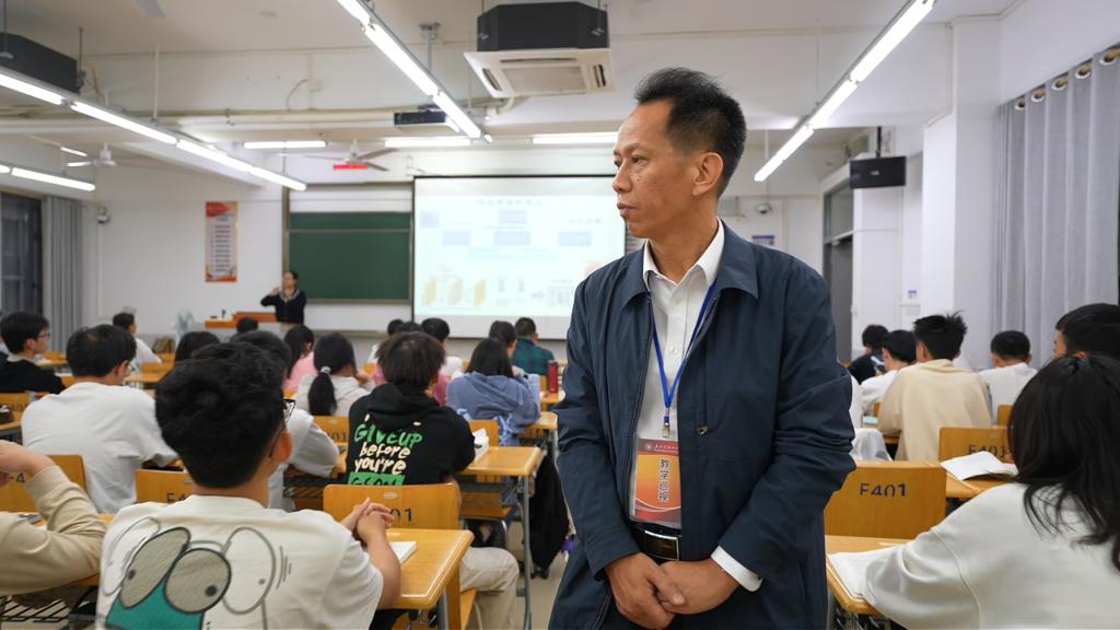 谢锦群走进课堂,先后听了《中国近现代史纲要》和《习近平新时代中国特色社会主义思想概论》两门课程,重点关注授课内容、方法及课堂实效,细致观察教师授课状态、课堂互动环节及学生听课反应,全面了解课堂教学情况。课后,他与授课教师亲切交流,对两位教师扎实的专业功底、严谨的教学态度和生动的课堂呈现给予充分肯定,并就课程组织、课程展示形式等方面提出了指导性意见建议。