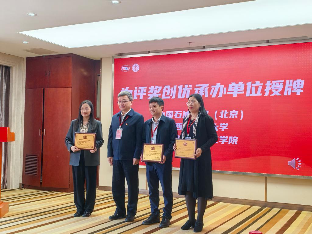 中国石油教育学会现场为学校颁发评奖创优承办单位奖牌。