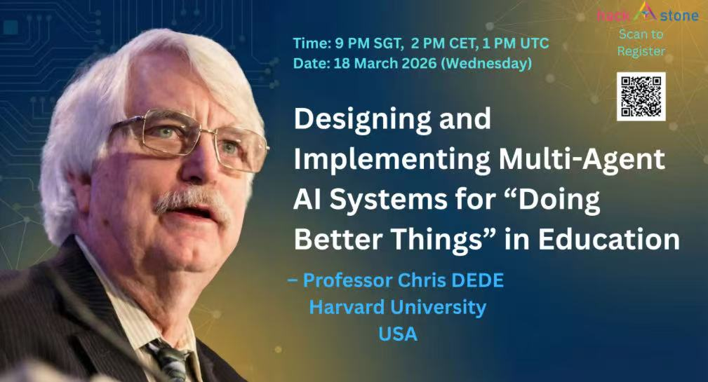 南洋理工大学蔡亦渔教授特邀我校教师参加哈佛大学教育学院Chris Dede 教授开展的线上专题讲座,讲座聚焦智能体(Multi-Agent AI)在教育领域的创新应用。本次讲座机会珍贵,名额有限,诚邀各位老师报名参与,共同探讨 AI 赋能教育的新路径。